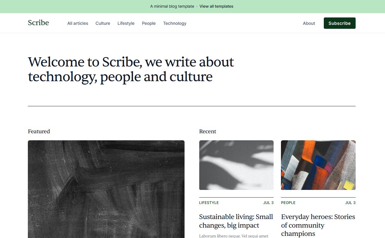 - Author Pages: If you plan on having multiple contributors, Scribe has built-in author pages that automatically pull in all articles written by that person, along with a bio and social links.