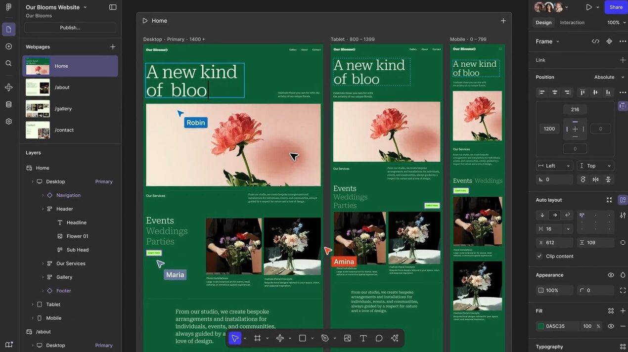 Figma’s “multiplayer” capability is its primary selling point. Multiple cursors appear on the screen simultaneously. A copywriter can fix a headline while a developer inspects the code and you adjust the padding—all at the exact same second.