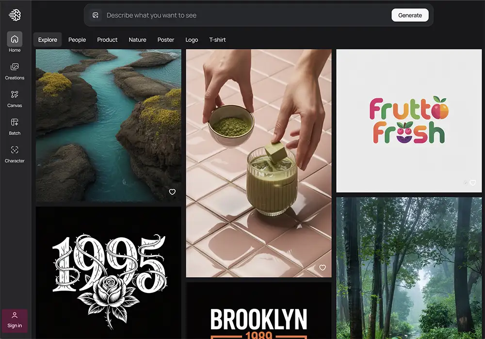 • Why it’s a pro tool: It’s not just a prompt box. It has an “AI Canvas” for inpainting (fixing details) and outpainting (expanding the image), custom-trained models for specific styles (e.g., game assets, photorealism, isometric art), and a “Prompt Magic” feature that adds serious punch to your ideas.