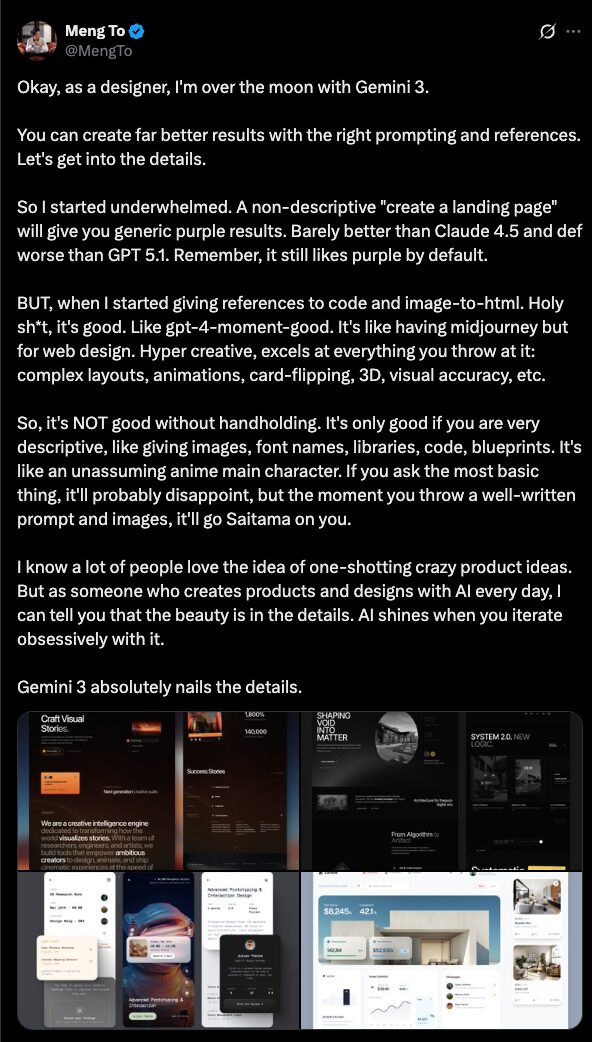 Yesterday, Google released Gemini 3. You’ve probably seen people highlighting benchmark scores, Elo ratings, technical comparisons to OpenAI, etc.