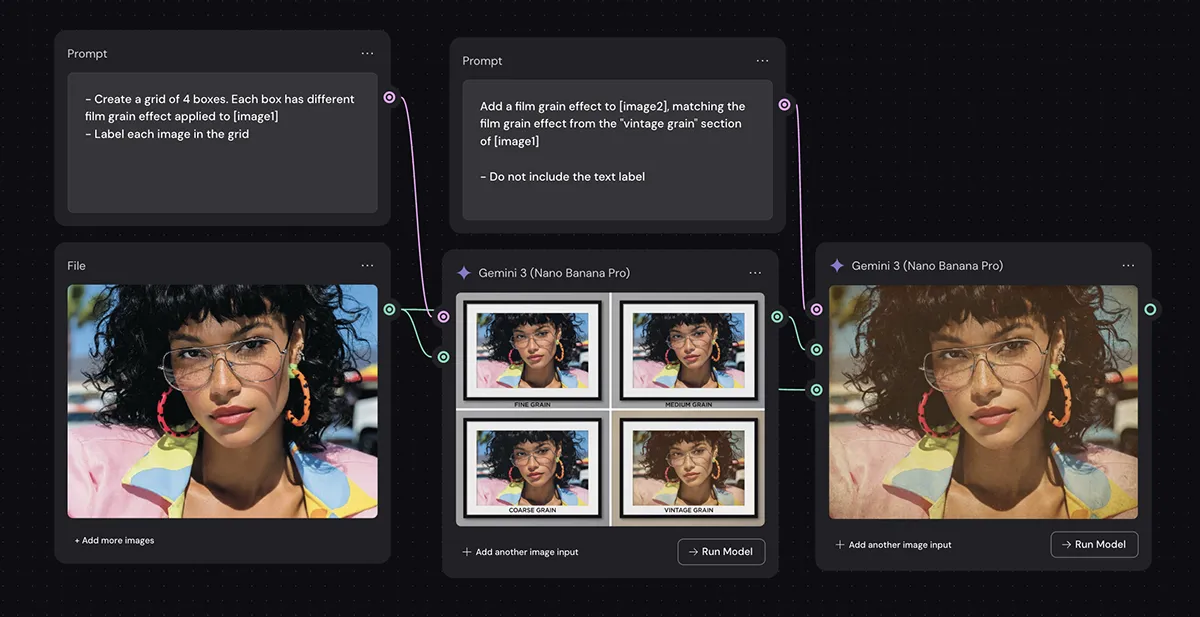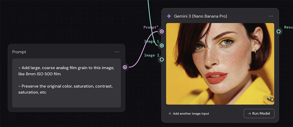 Pro Tip: You can actually “bridge” your tools here. Create a high-quality grain reference using a plugin like Dehancer, save that as a reference file, and then use Nano Banana to apply that specific “look” at scale to hundreds of other images. It gives you the most control over the final texture.