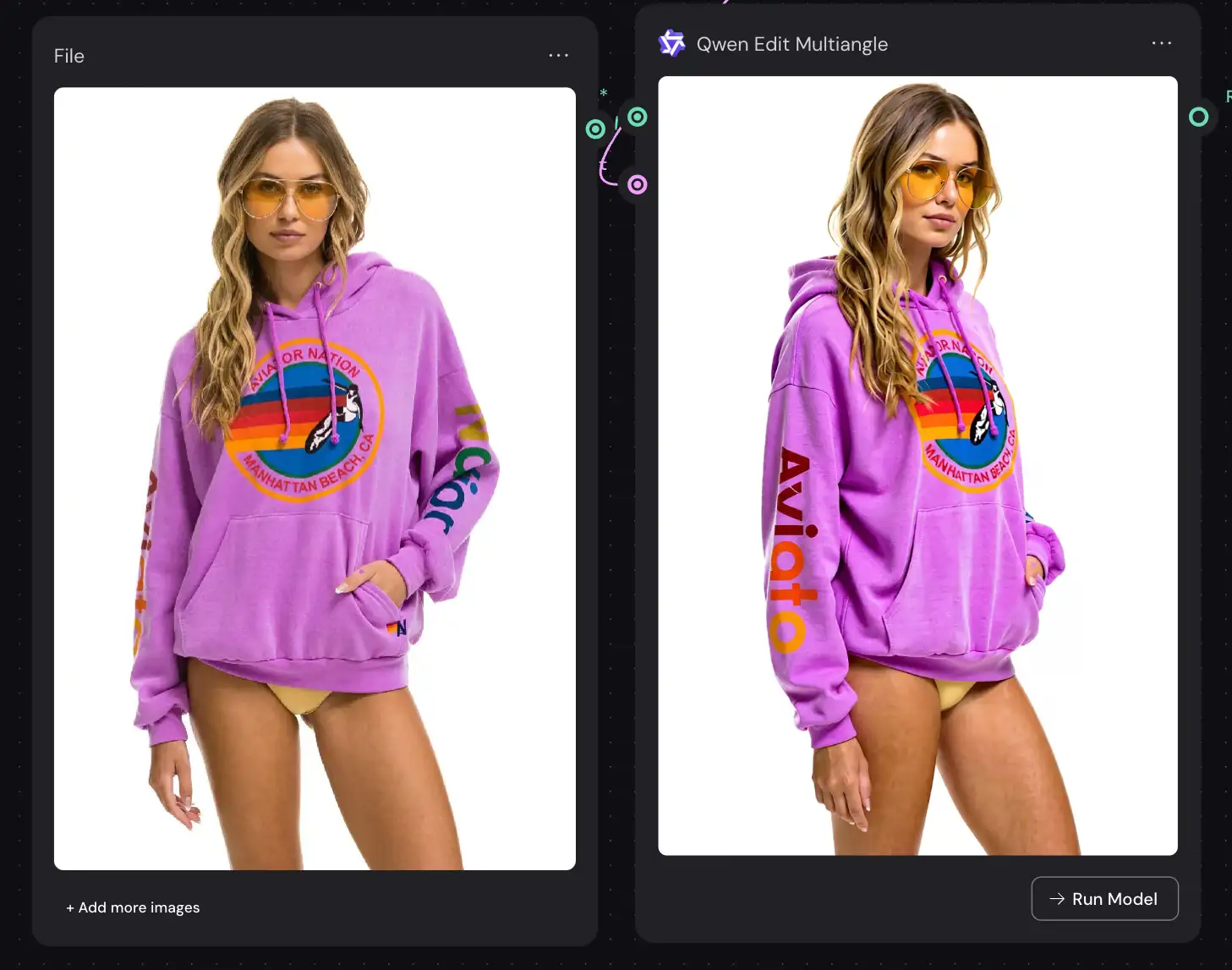 Text Trouble: This was a deal-breaker. I included text instructions in the prompt, but Qwen completely mangled the lettering on the hoodie. This is classic diffusion model behavior: it sees letters as shapes, not language (note the sleeves in the hoodie image above).