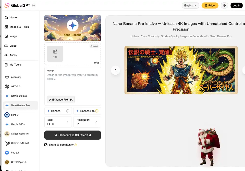 GlobalGPT is focusing on being the “all-in-one” hub. They’ve integrated Nano Banana Pro fully, and their free tier is one of the most accessible ways to get high-resolution output without the friction of the official app.