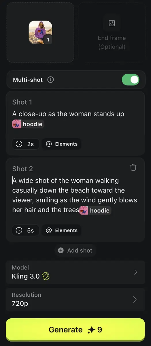 The Workflow: I used the Start Frame, Multi-shot, and Elements features. I treated the hoodie like a client product—it had to look the same in the close-up as it did in the wide shot.