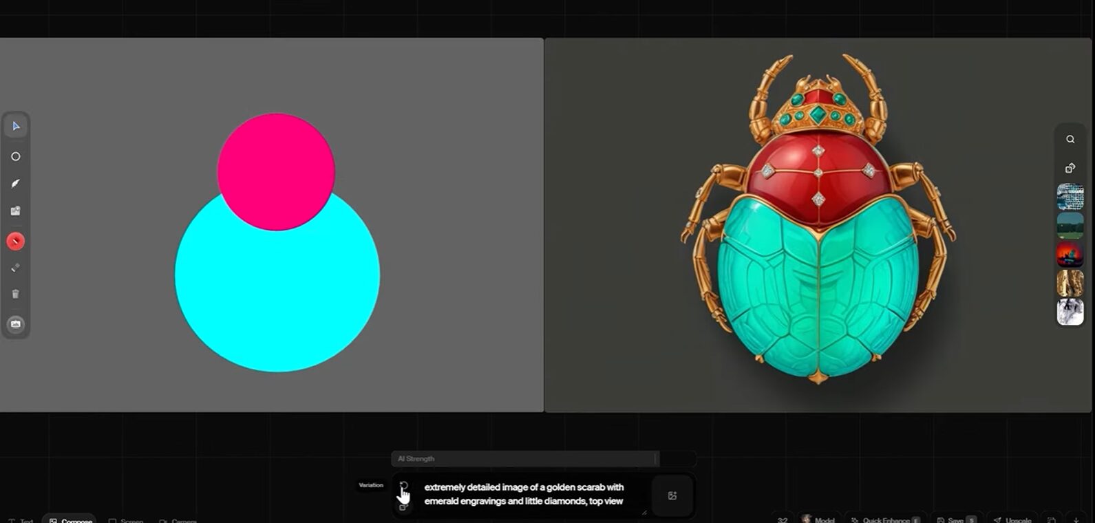Pro Tip for Composition: Use the “AI Strength” slider. This is the most critical setting in Krea.