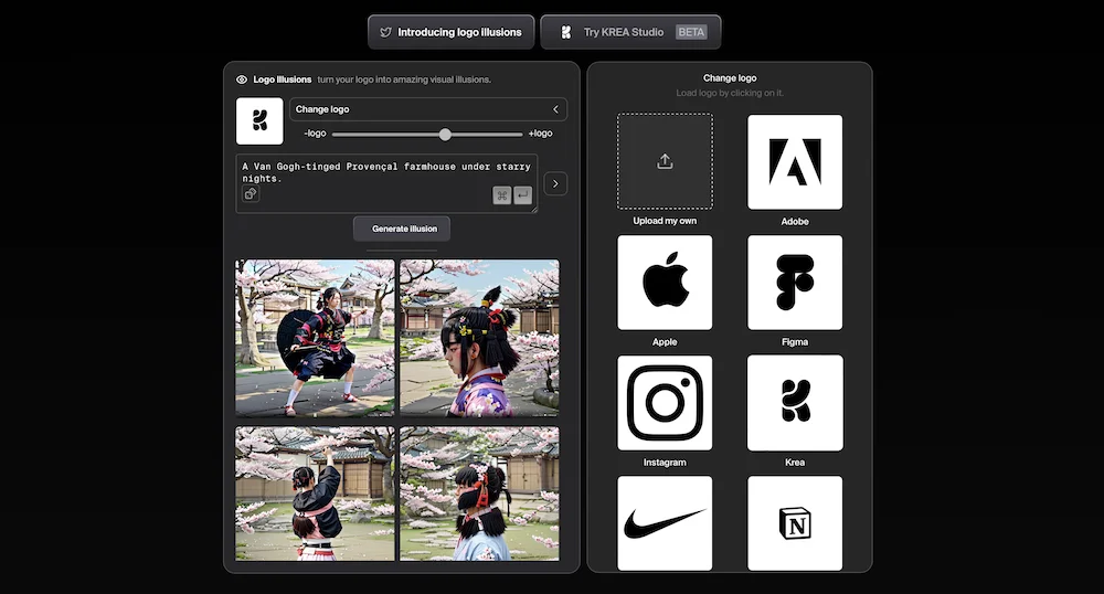 - Upload to Patterns: In Krea, navigate to the “Patterns” or “Logo Illusions” tool. Upload your PNG.