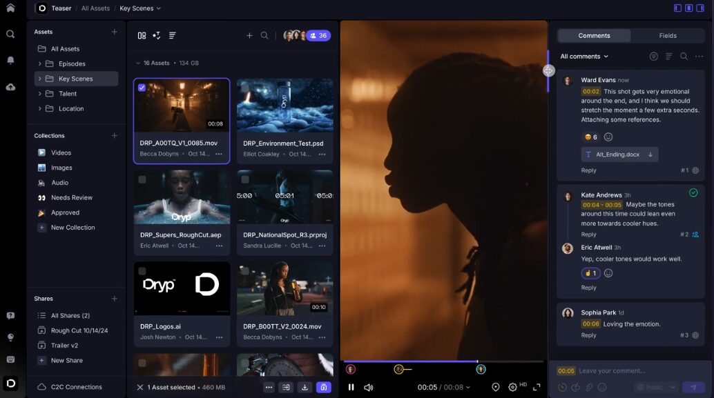 - Frame.io: For any creative working with visual assets, Frame.io is non-negotiable. It completely replaces the agonizing process of gathering feedback on video, design mockups, or photos. No more vague emails with notes like, “Around the 30-second mark, can we change the color?” With Frame.io, clients and collaborators can drop precise, time-stamped, and annotated comments directly onto the media file. All feedback is in one place, tied to the specific frame, making revisions faster, clearer, and infinitely less frustrating.