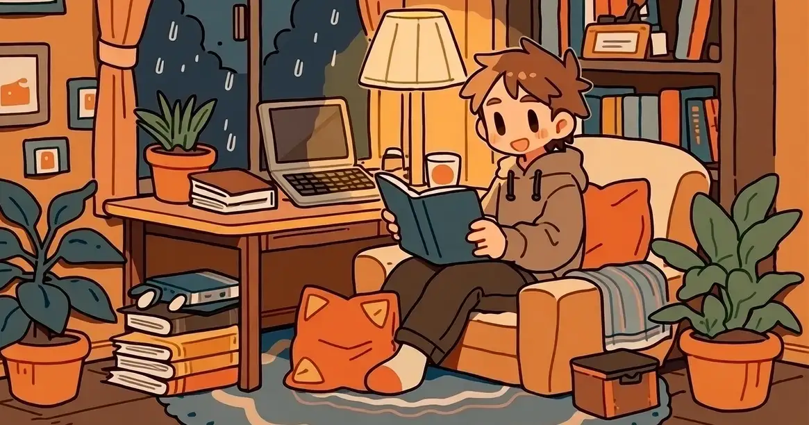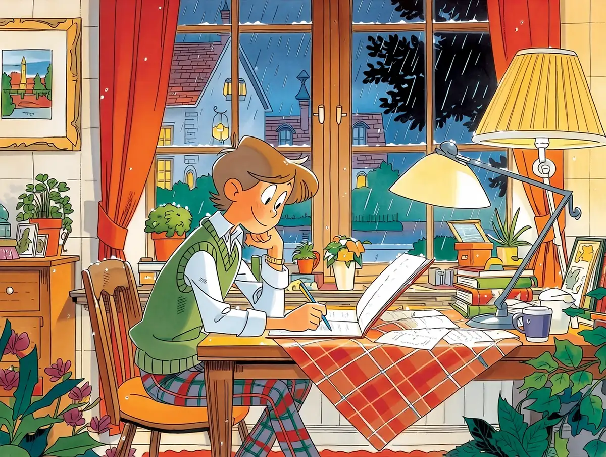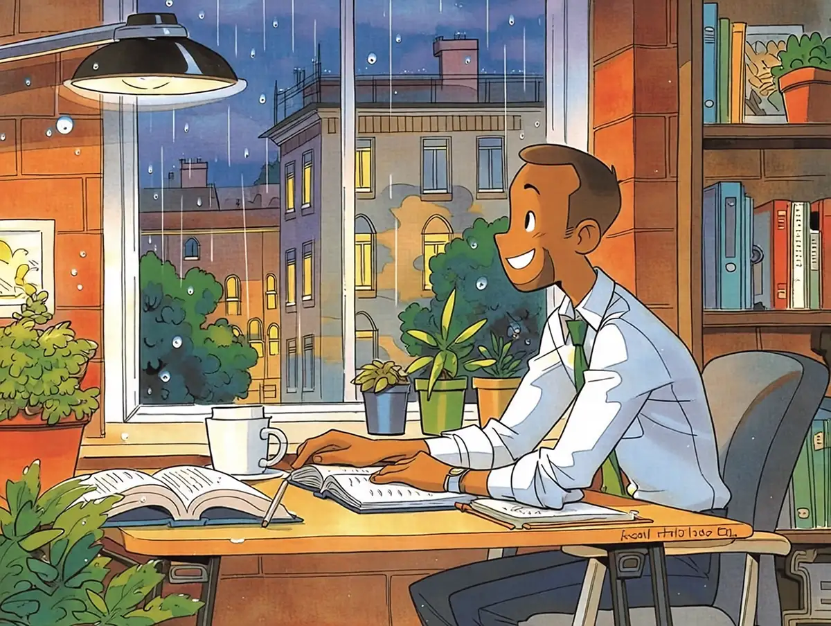 So how does it stack up? I ran two tests, based on the same core prompt: “Illustration of a young man in his room studying at night, rainy outside, cozy vibe.”