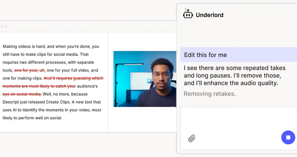 Descript has been the industry standard for text-based video and audio editing for years. If you are still editing interview footage or podcasts by dragging waveforms around a timeline in Premiere or Audition, you are wasting time. With the release of Underlord, Descript has shifted from a tool with some AI features to a platform built around an "agentic" AI assistant. This is not just a marketing rebrand. Underlord is a sidebar companion that acts... read more ›