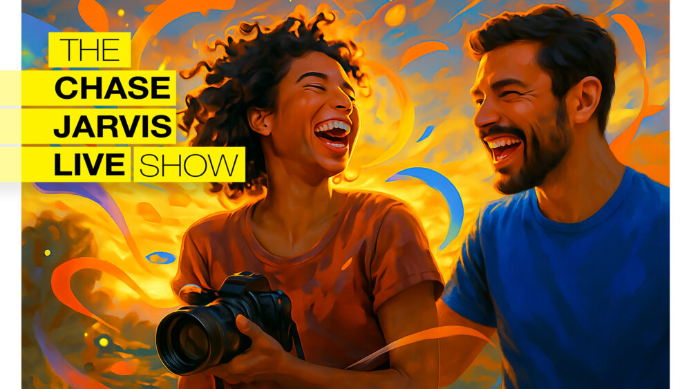 A portrait of Israa Nasir, a psychotherapist, set against a black background with bold white text that reads, "Why Rest Feels Like Failure," framed by a yellow border and a small "The Chase Jarvis Live Show" logo in the top-right corner.Toxic Productivity Is Killing Your Success
